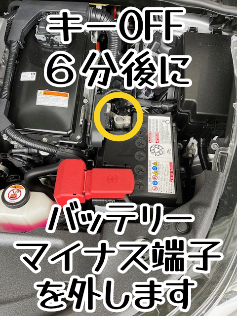 キーOFFにして数分待ちバッテリーマイナスを外します。