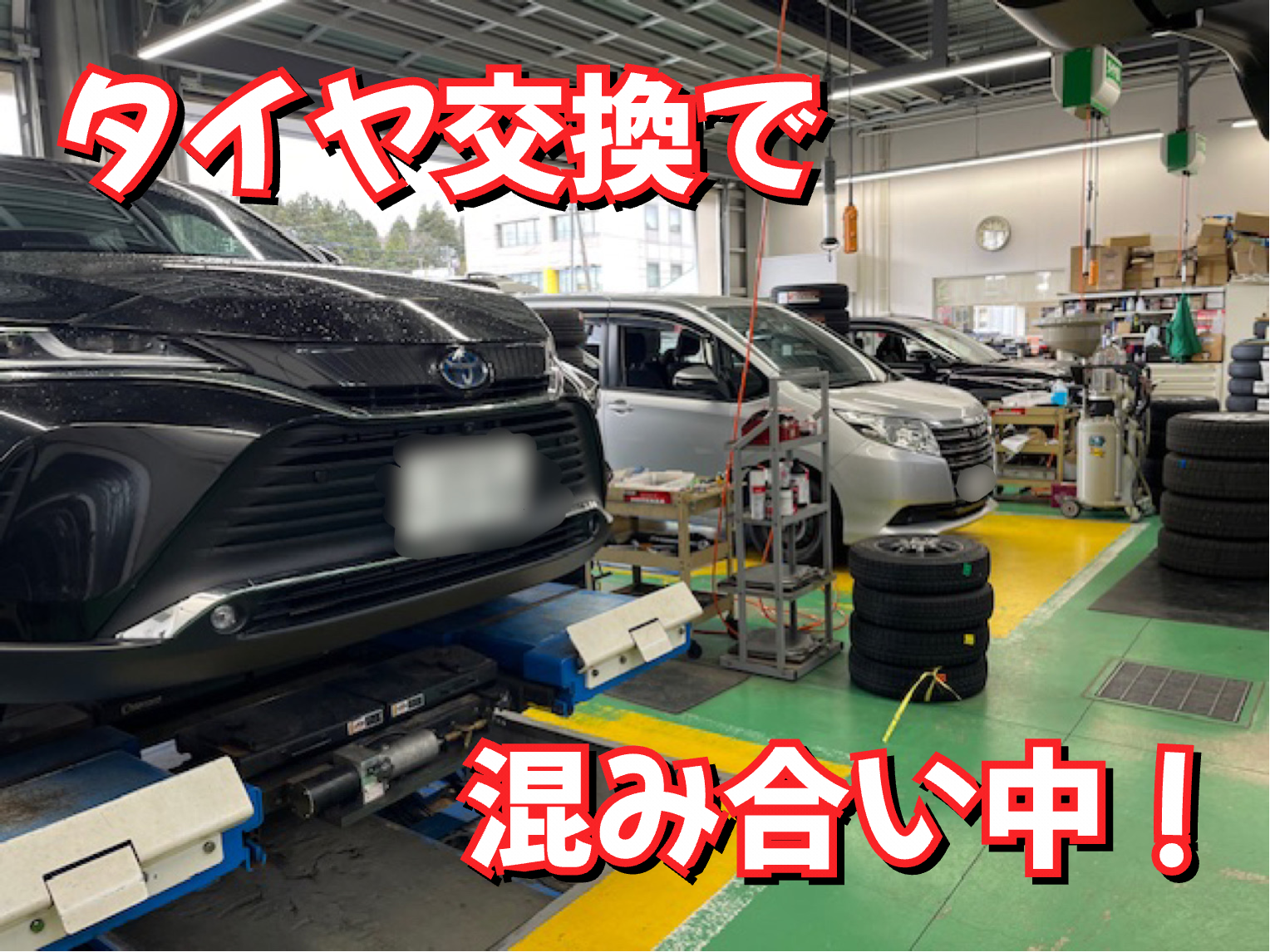 まだまだタイヤ交換で混み合っております。