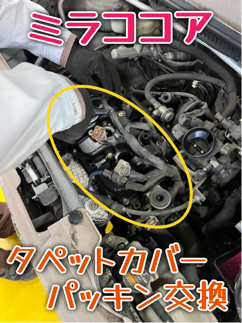 ミラココアのタペットカバーパッキン交換です。