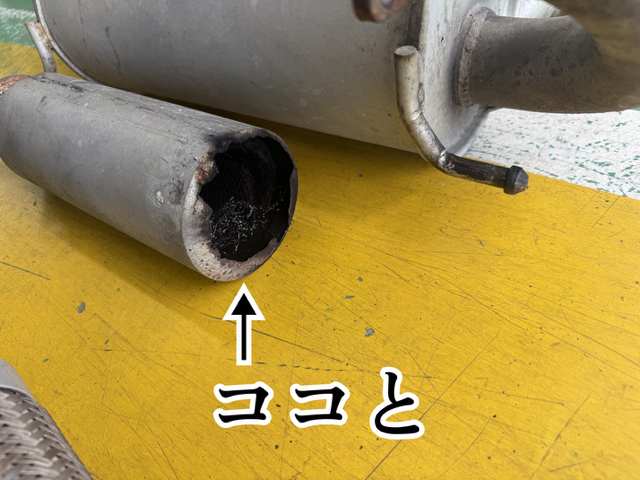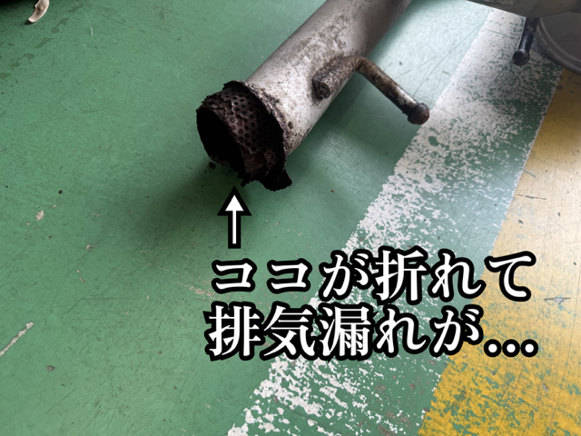 一部折れてて排気漏れ