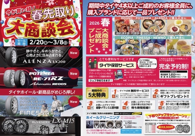 タイヤ点検・安全点検/タイヤ履き替え/オイル交換/その他ピット作業の予約カテゴリ:お知らせ