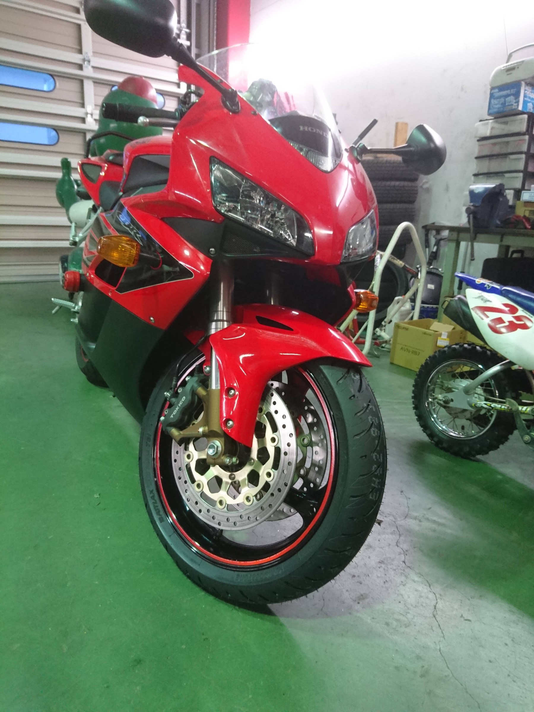 来週、北海道ツーリングに行かれると、タイヤの空気圧点検にいらしたお客様CBRさんでしたが、