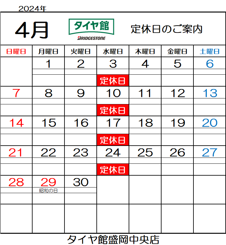 2024年4月 定休日 ポスト 2024年3月25日 HPをご覧いただき ありがとうございます。 4月の定休日は 3日(水) 10日(水) 17日(水) 24日(水) 上記、毎週水曜日となります。 第二火曜日は営業しております。 ご不便をおかけしますが よろしくお願いいたします。 カテゴリ:お知らせ