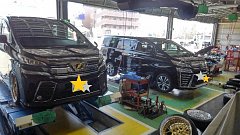 今日のピット・・・ WダブルW【 VELLFIRE 】~~~♪♪ ↑↑↑ 写真左側の【 VELLFIRE 】 スポイラーのお取付作業中~☆☆☆ ↑↑↑ 写真右側の【 VELLFIRE 】 タイヤ・ホイールSETご購入いただき~ タイヤ交換の作業中~☆☆☆ 私もいつかは乗りたい【 VELLFIRE 】~♪♪ 2台並ぶと~大迫力ですねッ♪♪ この2台...