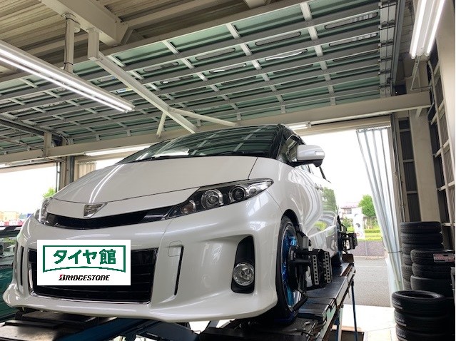 トヨタ・エスティマの新品アルミセット装着&アライメント調整です!