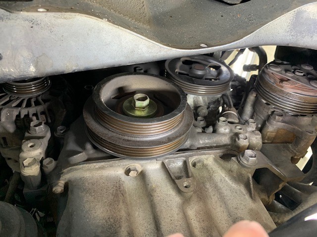 ベルトの調整ボルトを緩まし古いベルト2本を外していきます。