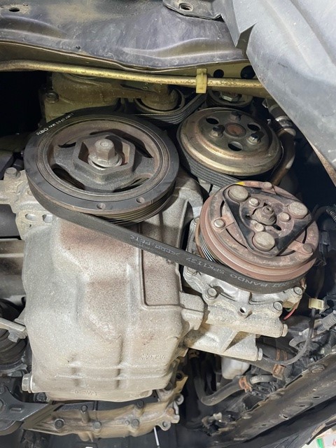 点検した結果、ベルト鳴きの音でしたのでファンベルト交換をしていきます。