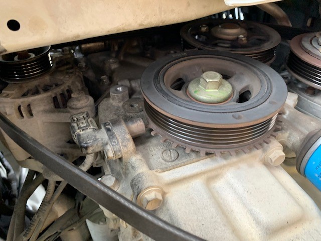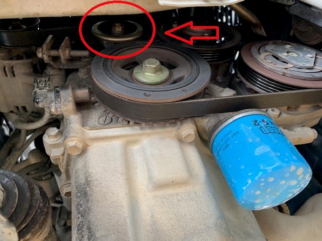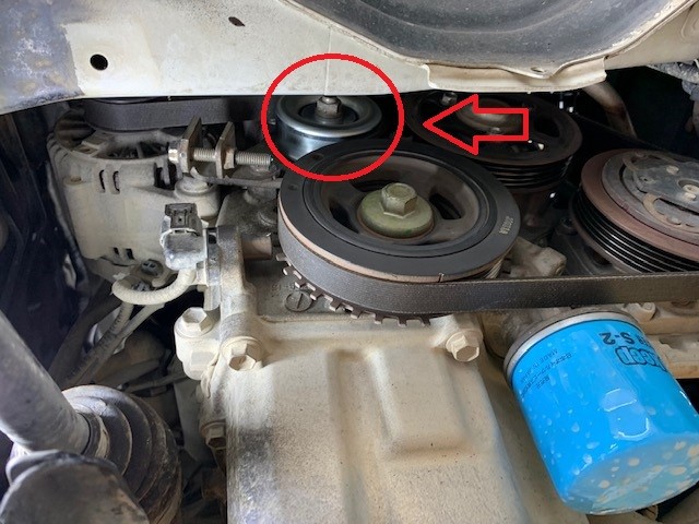 ベルトを外しプーリーを点検したところ、異音やガタを発見!
