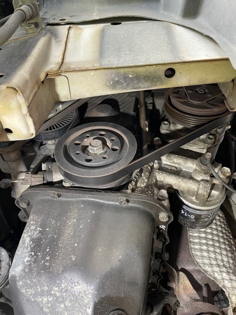 新品交換し、張り調整もしてファンベルト交換は終了です。