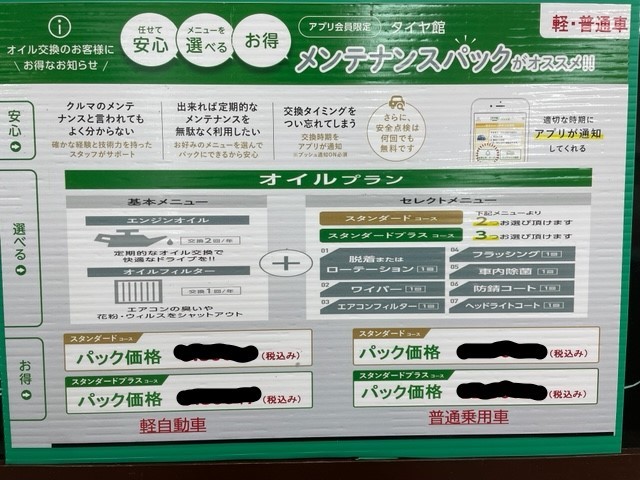 アルトエコのメンテナンスパック,スタンダードコースです。