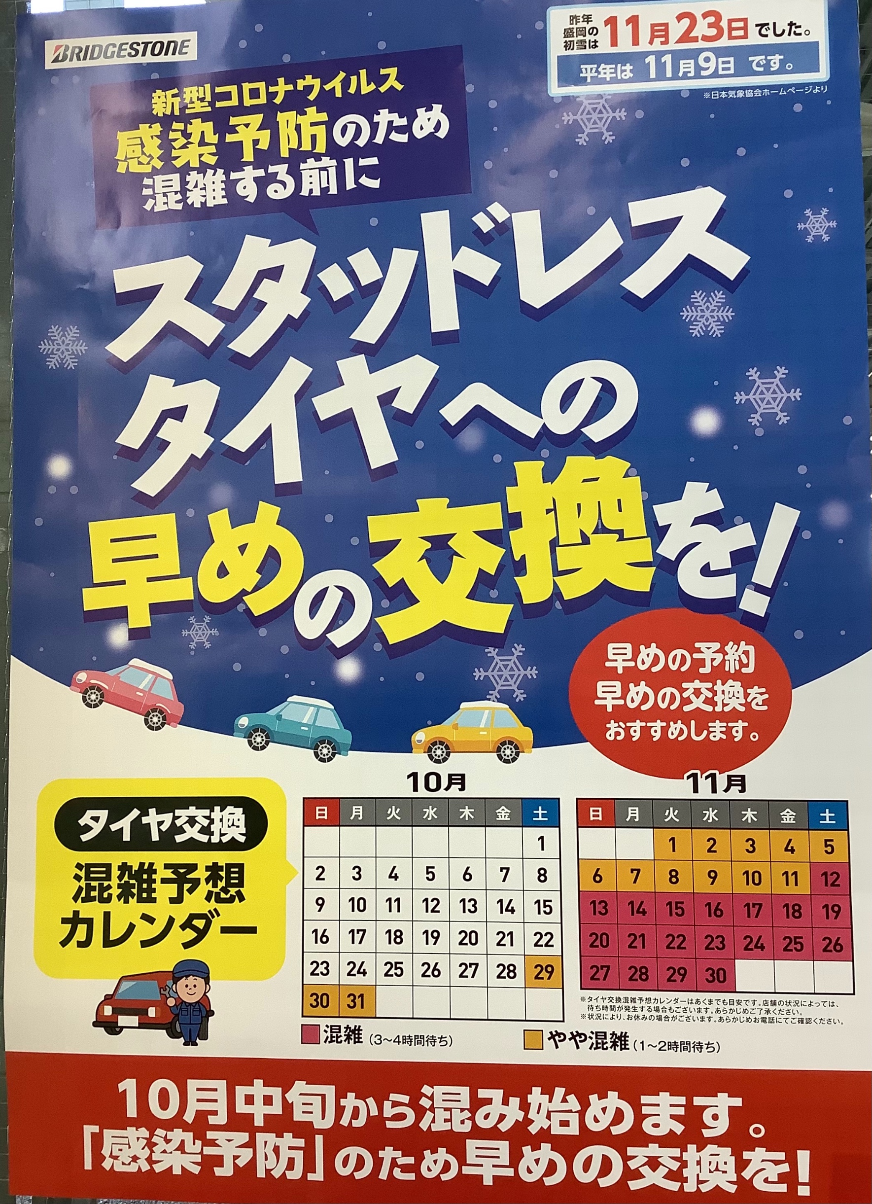 混み合う前に、雪が降る前に冬タイヤへのタイヤ交換、オススメします!