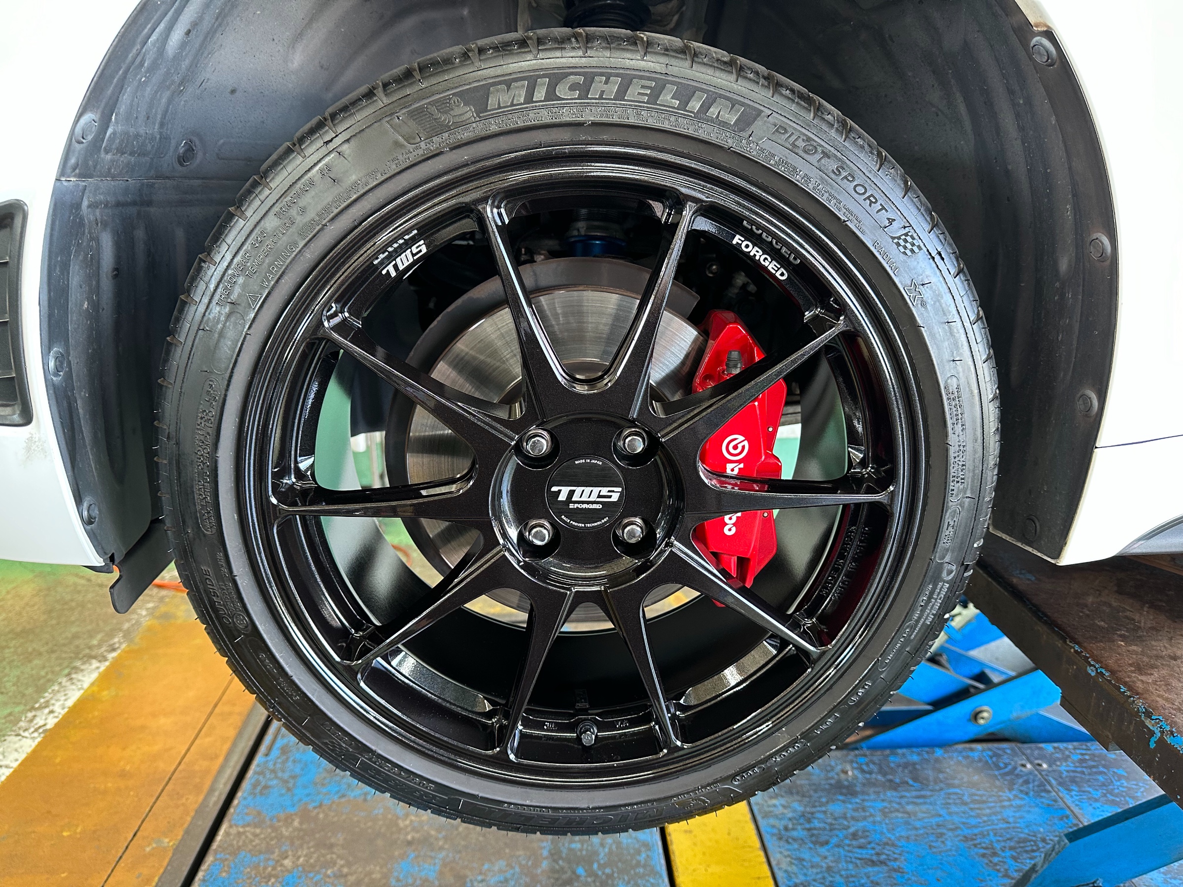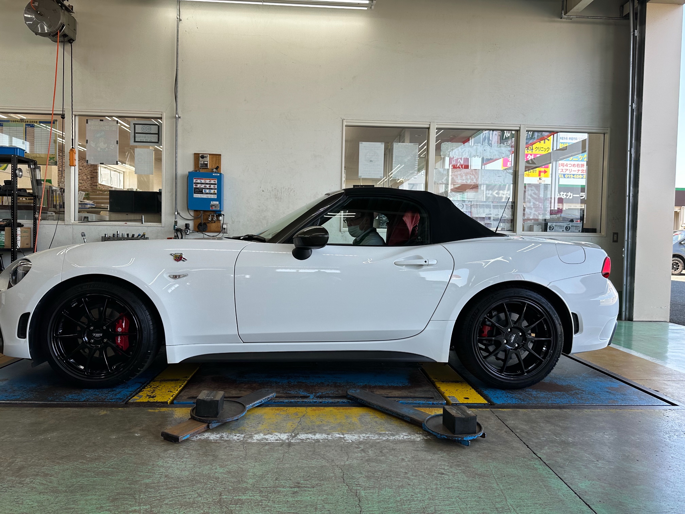 アバルト124スパイダー★新品アルミ装着! ポスト 2023年4月7日 こんにちは! 今日は昨年 車高調取り付けでご紹介した アバルト124スパイダーの 作業のご紹介です。 足回りと一緒にご購入頂いた 新品アルミを先日装着しましたので ご紹介です! TWSの黒です! 軽量かつカッコいいデザインで、 足元がより引き締まって見えますね♪ 取り付けの際も本当に軽いホイールでした笑 オーナーI様、 この度はご購入頂きありがとうございました♪ 担当:栃沢