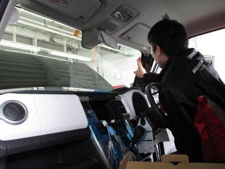ナビ移設の作業でした ポスト 2015年2月15日 違う車で使っていたナビを、新車のハスラーに移設しました。当然の準備ですが、新車ということもありいつもより気を遣ってパネル周りに傷つけないようにテープを貼って作業しております。最近の車は軽カーにもブレーキアシストの機能があり、ナビのアンテナなどを付けるのにも気を遣いますね(汗)そんなこんなで無事に取付完了となりました。ご利用ありがとうございました!