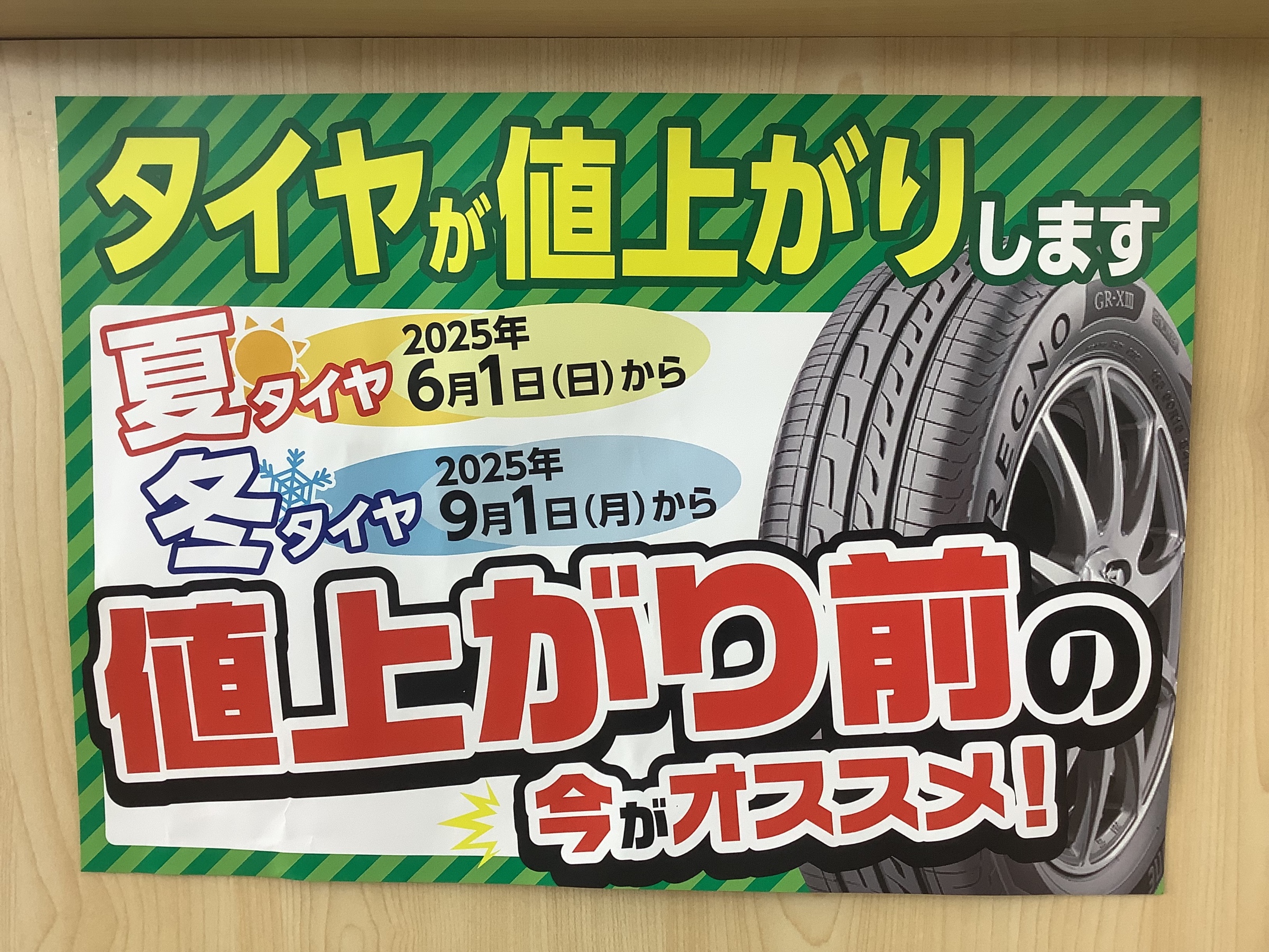 夏タイヤが、6月より値上がりしますので、今が、値上がり前に購入する