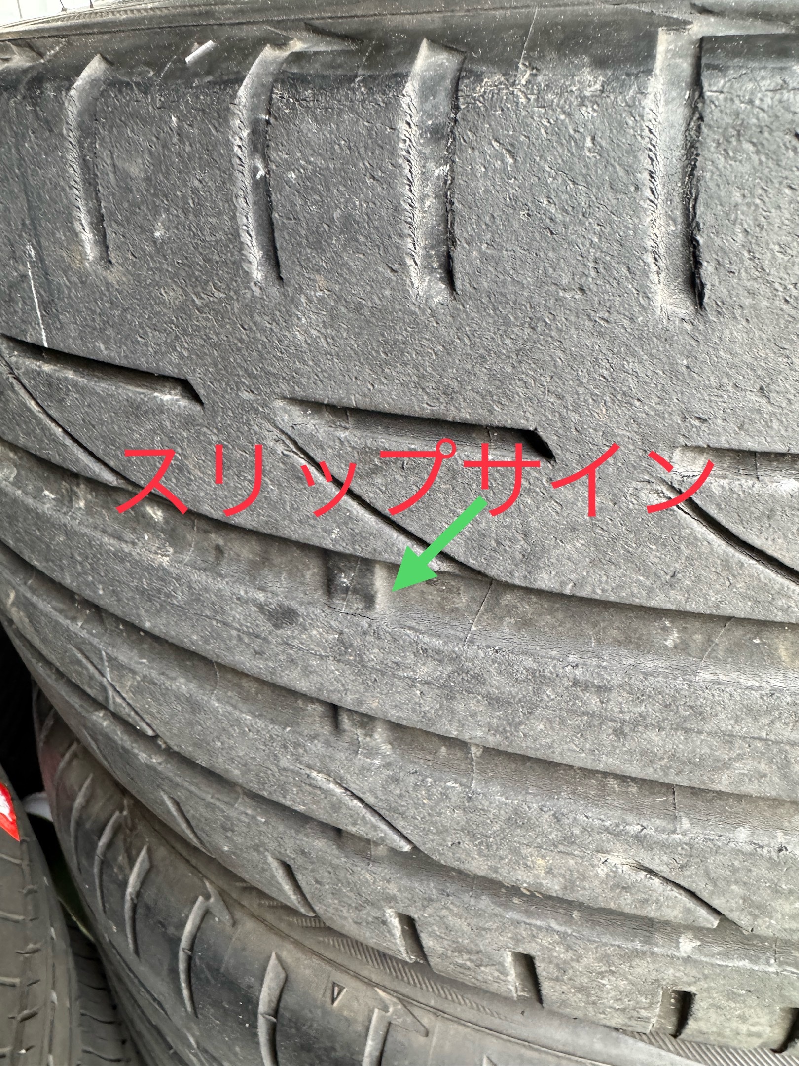 スリップサインまで溝があるから、まだまだ使用出来るだろうと、