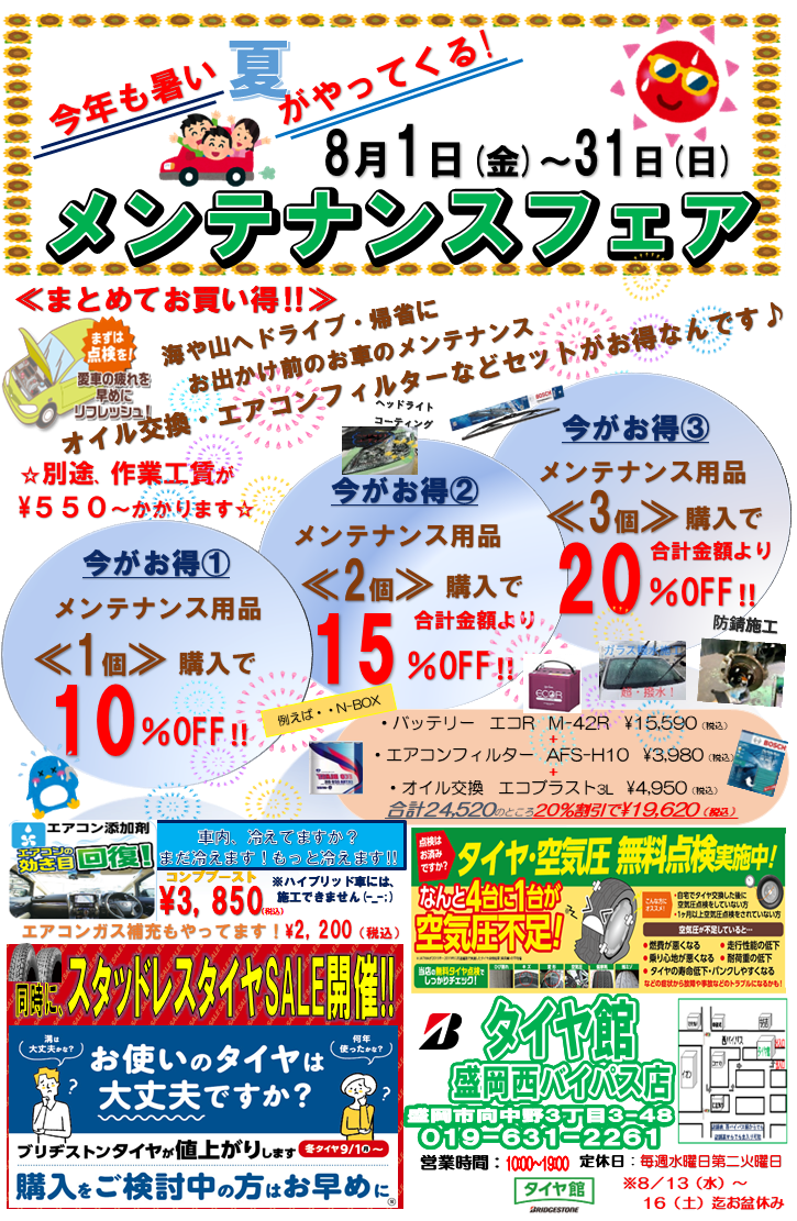 タイヤ館盛岡西バイパス店もイベント行います。