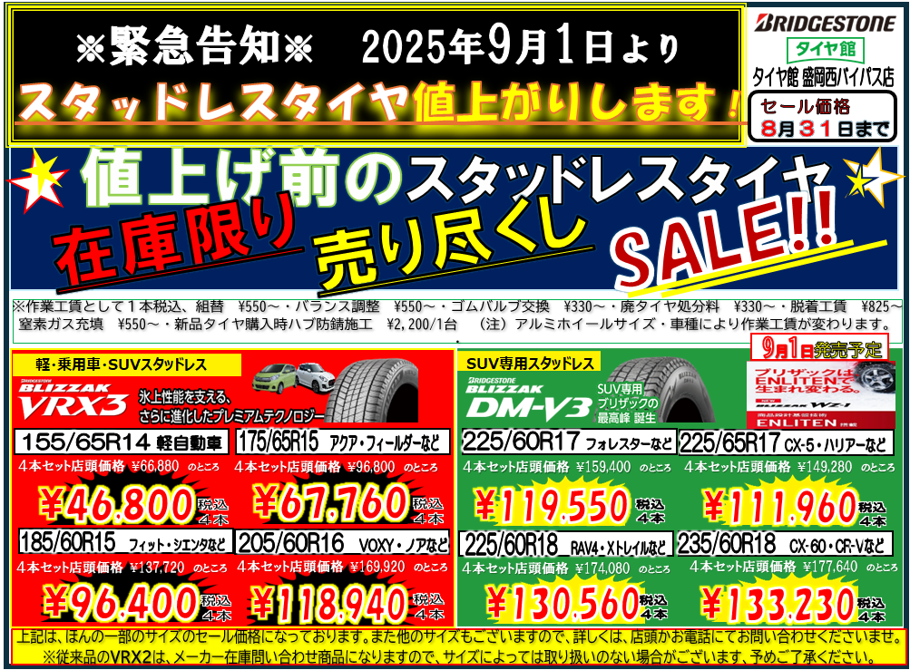 一緒に値上げ前に、スタッドレスタイヤもいかがですか?