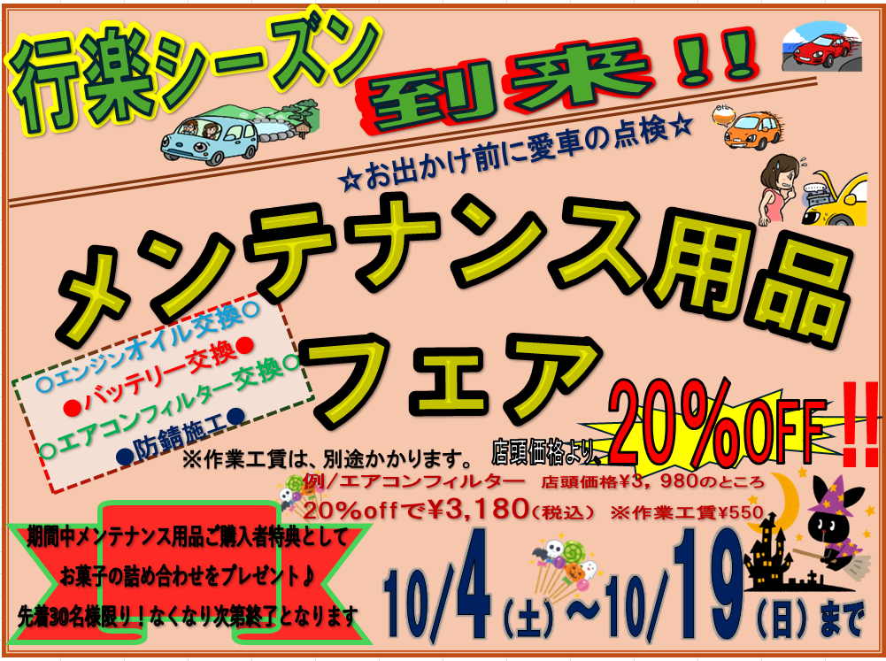 さらに、10月4日から19日まで、メンテナンスフェア開催してます。