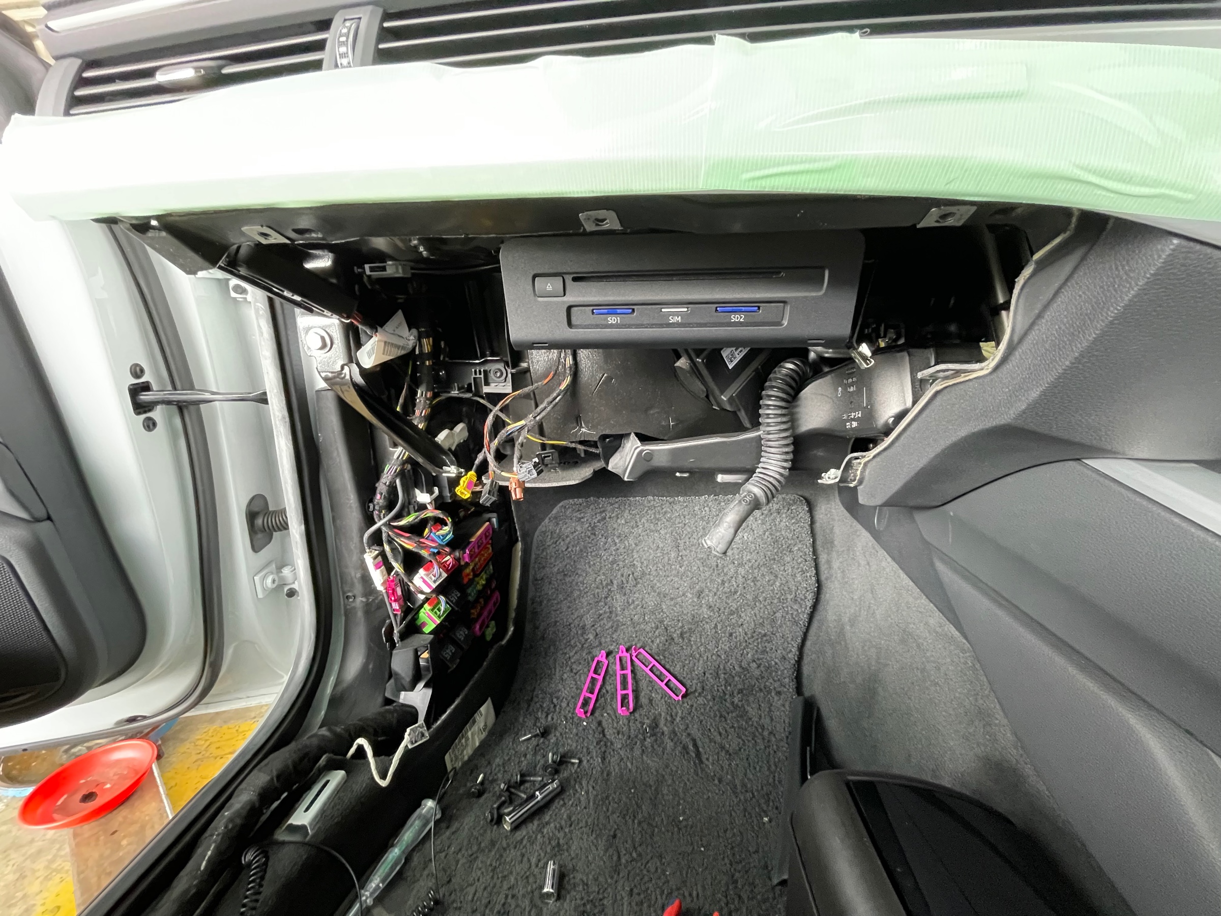 助手席グローブボックスを外し、