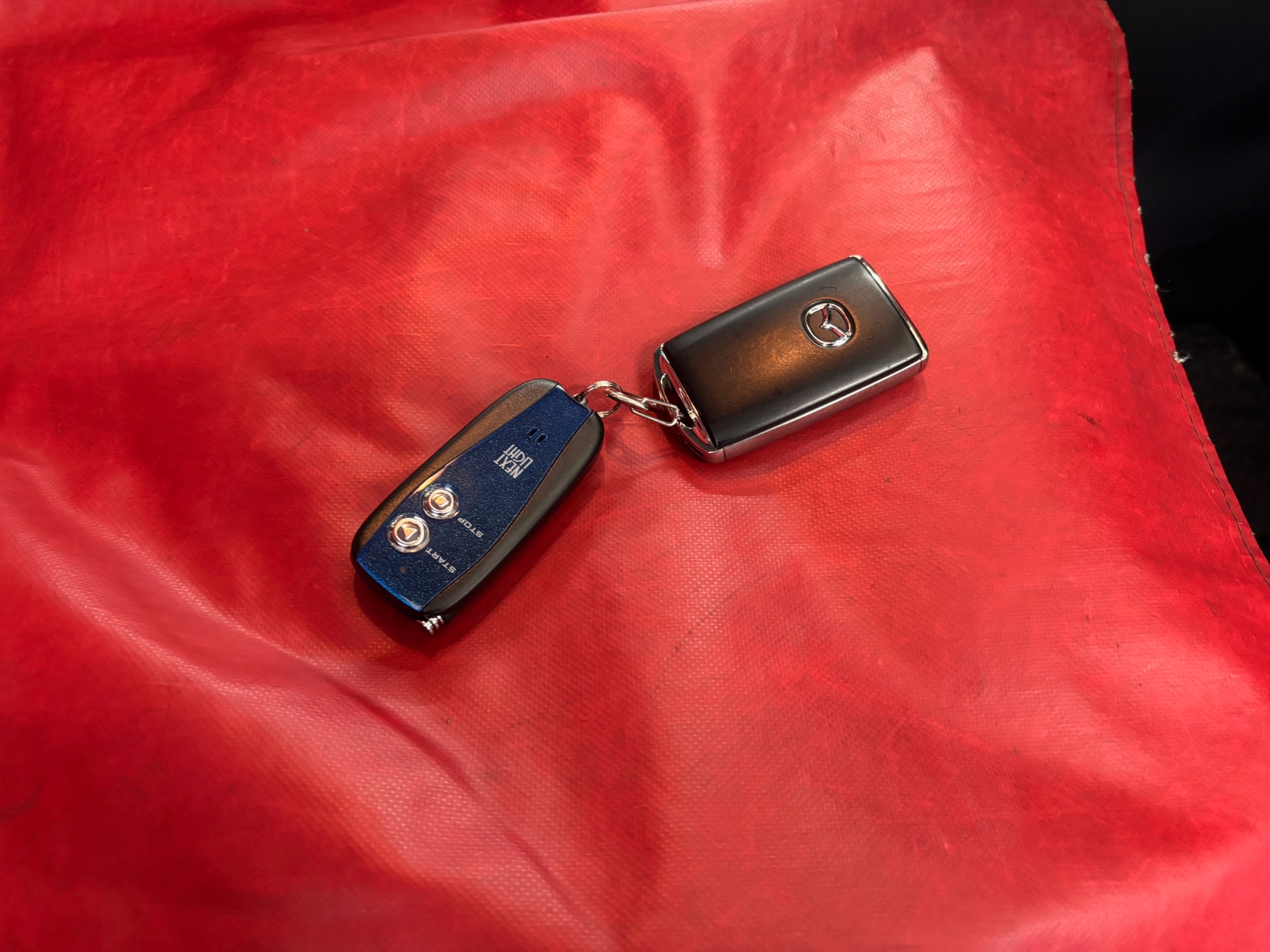リモコンをスマートキーにつけます!リモコンとキーが一緒にないと正しく動作できませんので必ずリング等で取り付けた状態にしてお渡ししております^^