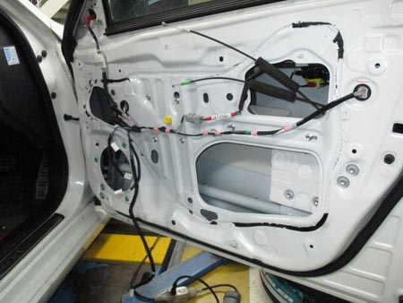 内張りを外すとドアの中は穴だらけで、これがスピーカーから出る音に大きく影響してきます