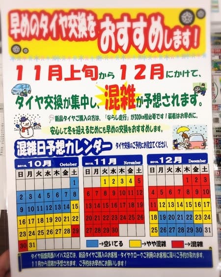 さてタイヤ交換ですが、今週末から混雑が予想されます。