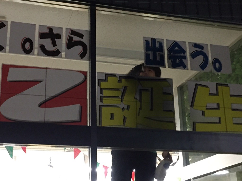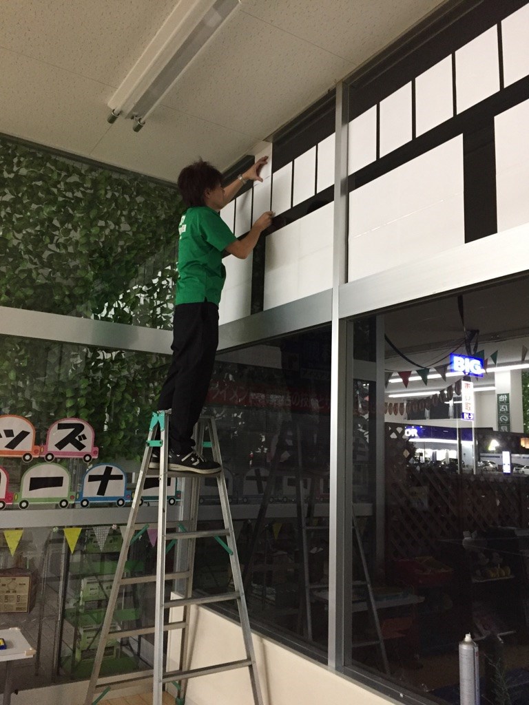 昨日の夕方、スタッフ蜂谷脚立にのり張替えをしていたところ・・・
