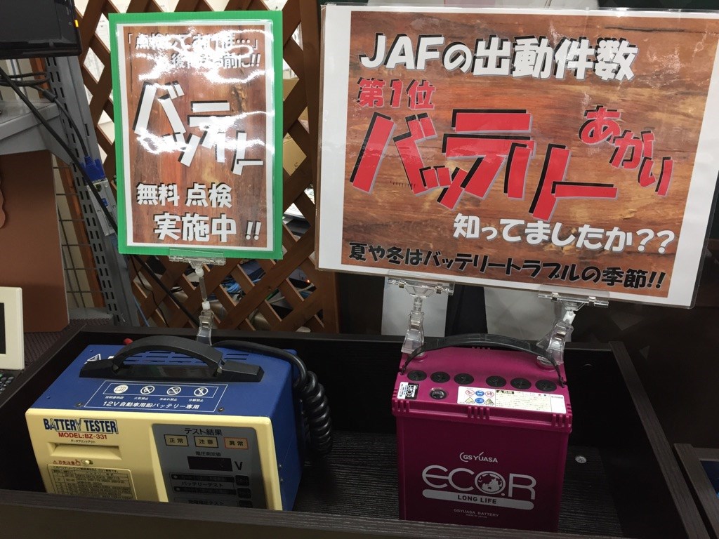 バッテリーは大丈夫?? ポスト 2017年11月3日 最近グッと寒くなったと思ったら、またあたたかいですね。 皆様お体大丈夫ですか? さて、寒くなってくるとストライキするのが【バッテリー】!! あなたのバッテリーは大丈夫ですか?? 無料でしっかり点検させていただいてます!まずはご相談を。 在庫もありますので、当日作業も大丈夫ですよ♪ まずはご相談くださいね!! ご来店お待ちしてます♪ 担当:蜂谷