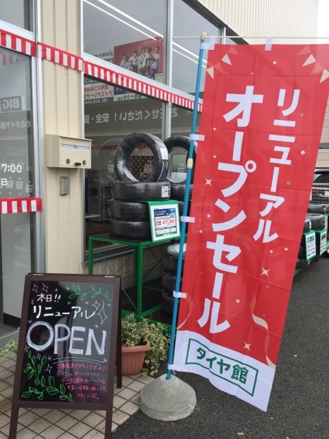 赤と緑のマークのタイヤ館から、新しくなりましたよ!!
