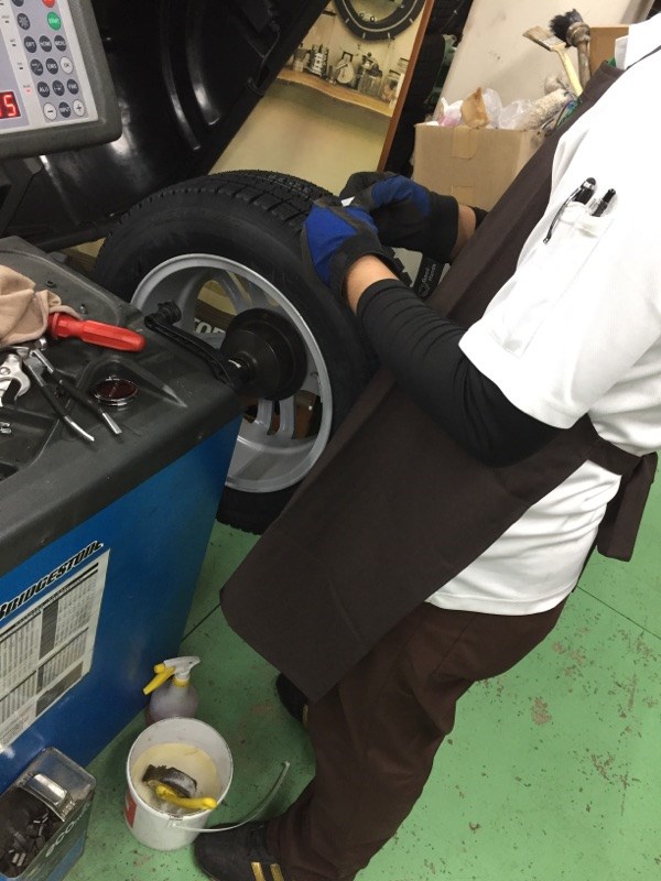 しっかりスタッドレスタイヤと出会い、セットされていきます!!