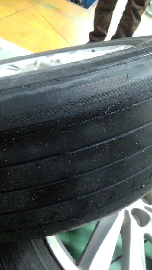 こちらのタイヤはもう溝もなくサイドはワイヤーも見えて危険です!