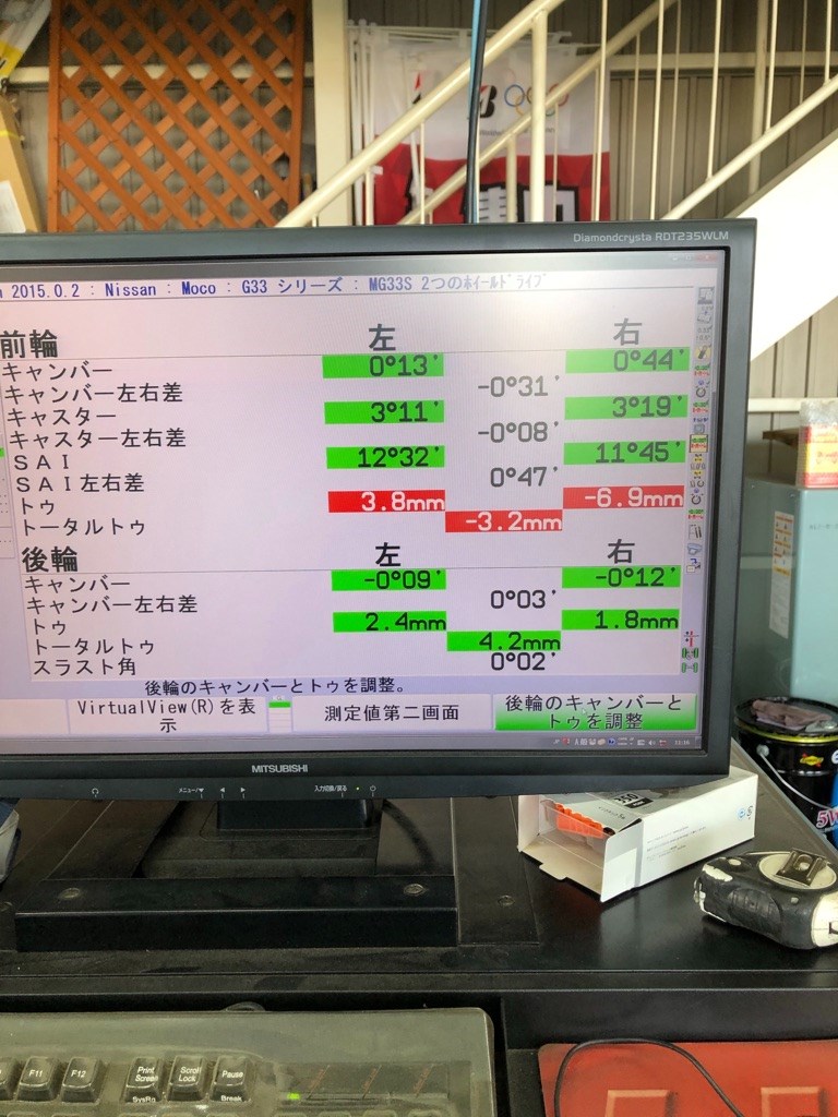 アライメント調整♪ ポスト 2018年12月24日 本日は朝からモコの【アライメント調整】です(^^) しっかり調整させていただきましたよ☆ 次はハイゼットです!! やっぱり気になるときに調整しておくと安心感も違いますよね! ご依頼ありがとうございます(^^) そんな本日は【防錆施工】もさせていただきましたよ! 風が強かったですが、晴れて一安心♪ ご依頼ありがとうございました!! 明日も元気に営業します! ご来店お待ちしてます♪ 担当:蜂谷