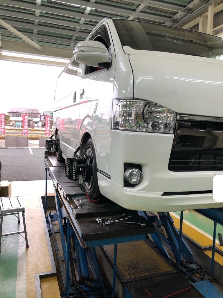 ハイエース☆アライメント調整!! ポスト 2019年2月3日 本日は、【アライメント調整】でハイエースが入庫しました★ ご来店ありがとうございます!! スタッフ鈴木が作業させていただきました!! 調整箇所が多いハイエース・・・ ズレをしっかり調整しましたよ!! ハンドルセンターも取れ安心してお客様へ★ アライメント調整は事前にご予約をいただいています♪ 今月は当日でも入庫出来る場合もあるかもしれません。 まずはお電話でご相談ください(^^) ご来店お待ちしてます♪ 担当:蜂谷