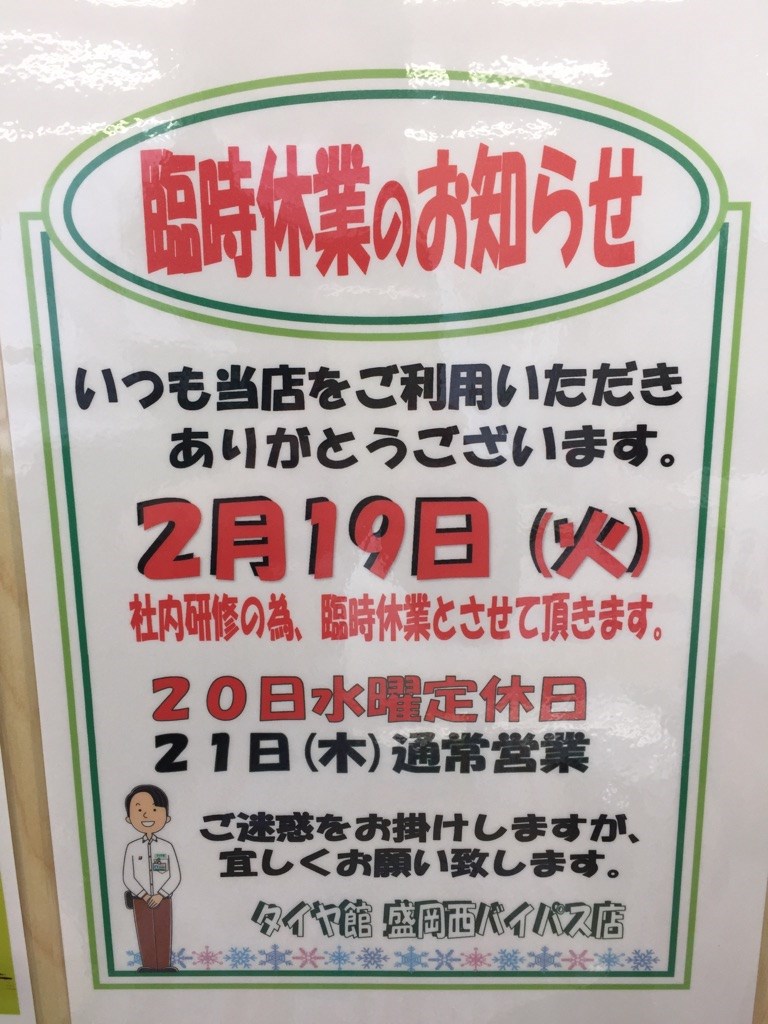 明日臨時休業のお知らせ! ポスト 2019年2月18日 ご迷惑をお掛けしますが・・・ 明日臨時休業となりますのでご注意ください。 ~臨時休業~ 2月 19日 (火) ご迷惑をお掛けしますが、 ご理解の程宜しくお願い致します。 社内研修にてお休みとなります! 全国のスタッフと気持ちをひとつに・・・ お客様の為に私達が出来ること、改めて確認してきます! (^▽^)/ 2月21日(木)より通常営業となります。 ご来店お待ちしてます♪ 担当:蜂谷