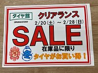みなさん、こんにちは! 明日2月20日~2月28日までクリアランクセールを開催いたします! 店内在庫入れ替えにつき、お得な商品をご用意しております。是非お立ち寄り下さい。 もしかしたらお客様にマッチする商品があるかもしれませんよ! 夏タイヤも続々入荷中です~ 今から春に向けての準備...