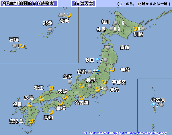 4日時点の天気予報では