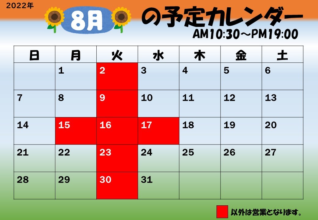 夏季休暇を頂きます。