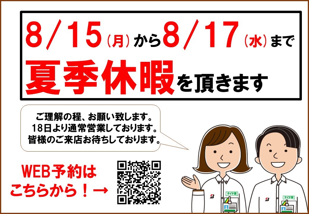タイヤ館守山は本日8/15より3日間