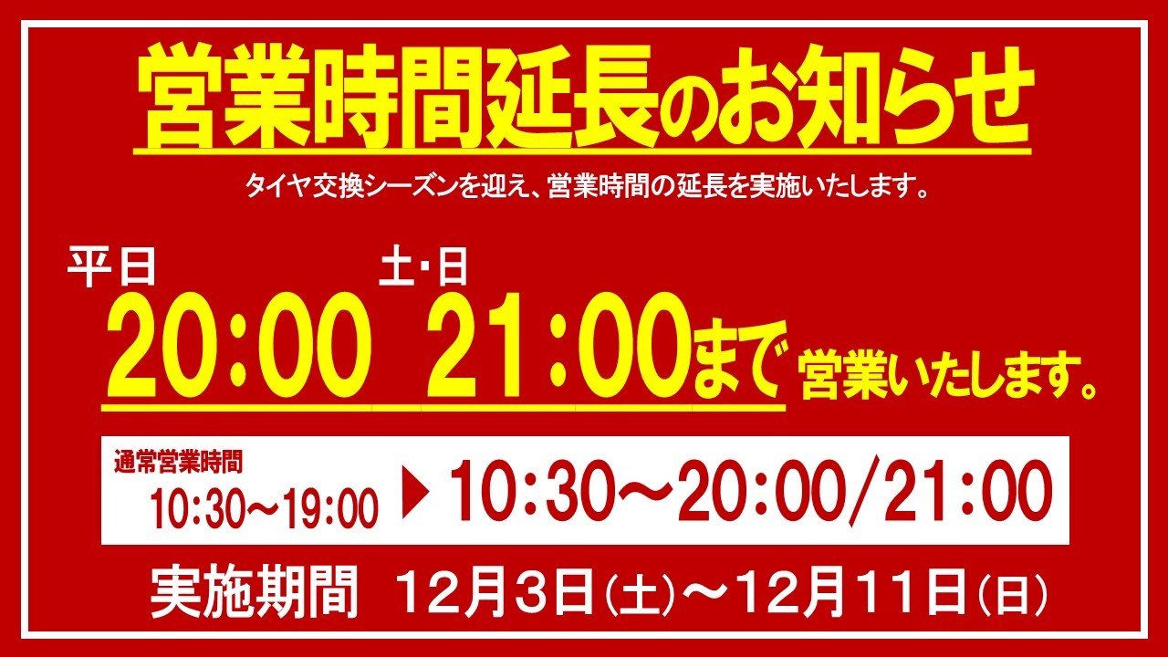 12月営業時間延長のお知らせ