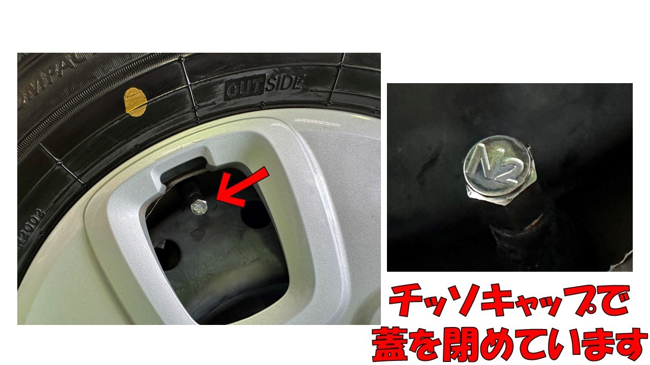 窒素ガスを入れたタイヤはチッソ(N2)キャップで