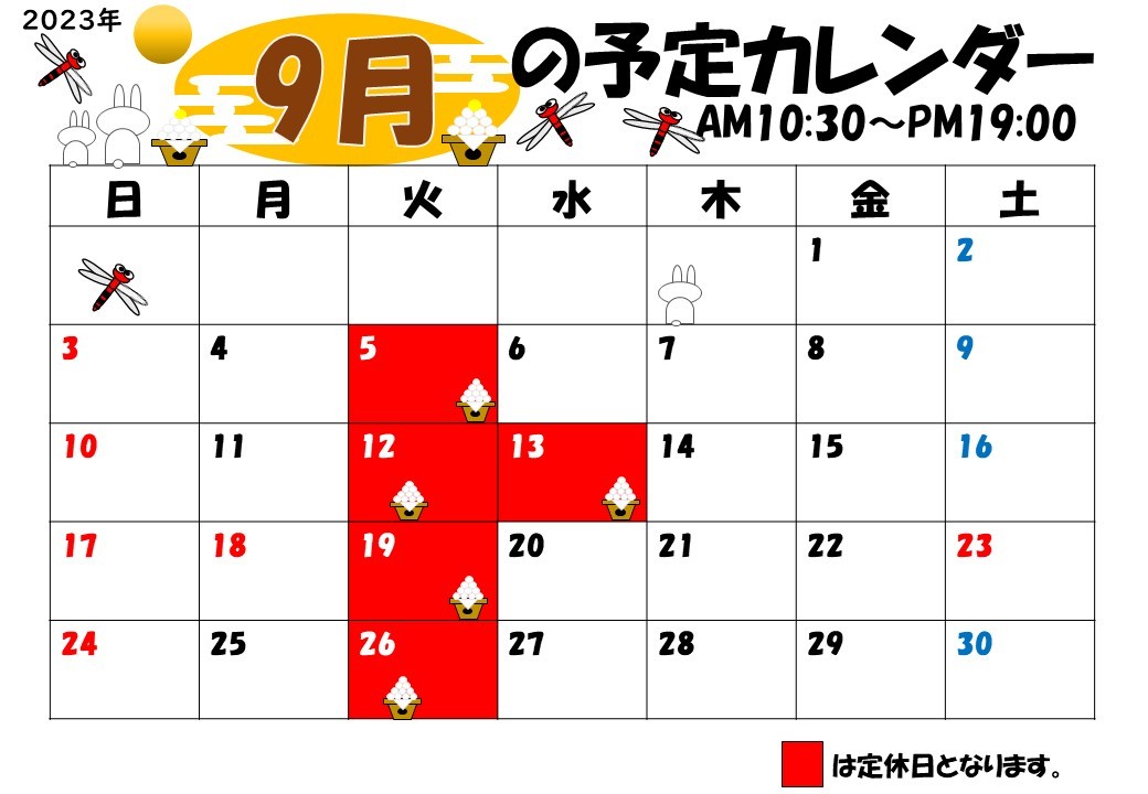★9月の定休日のお知らせです★