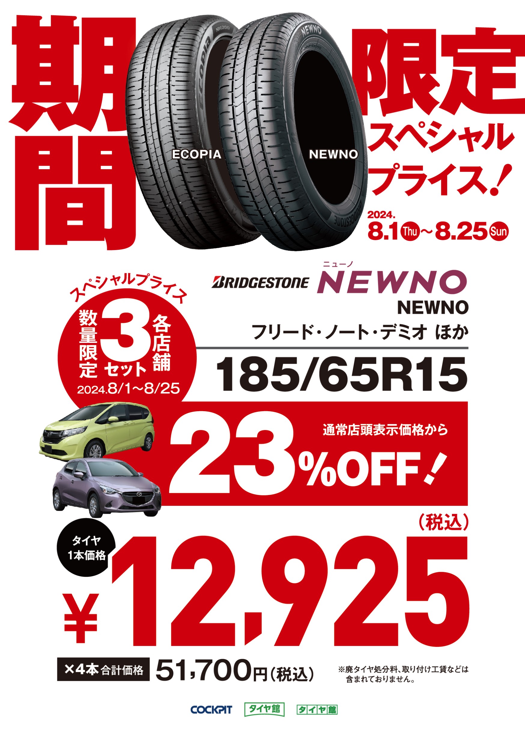 ブリヂストンタイヤを『今だけ』数量限定スペシャルプライスでご提供!