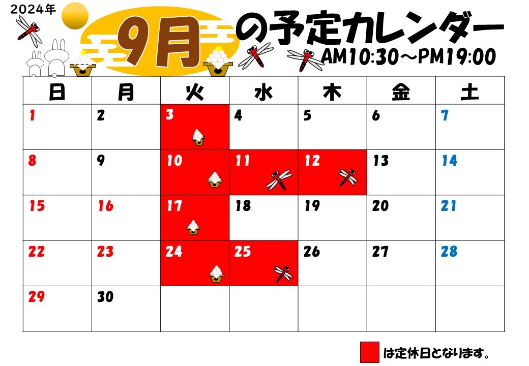 ★9月 定休日のお知らせです★