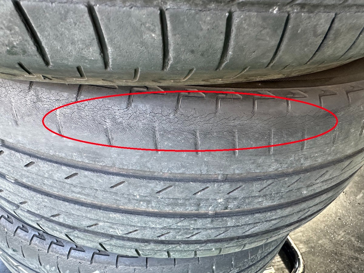 交換前のタイヤはひび割れも入っておりました。