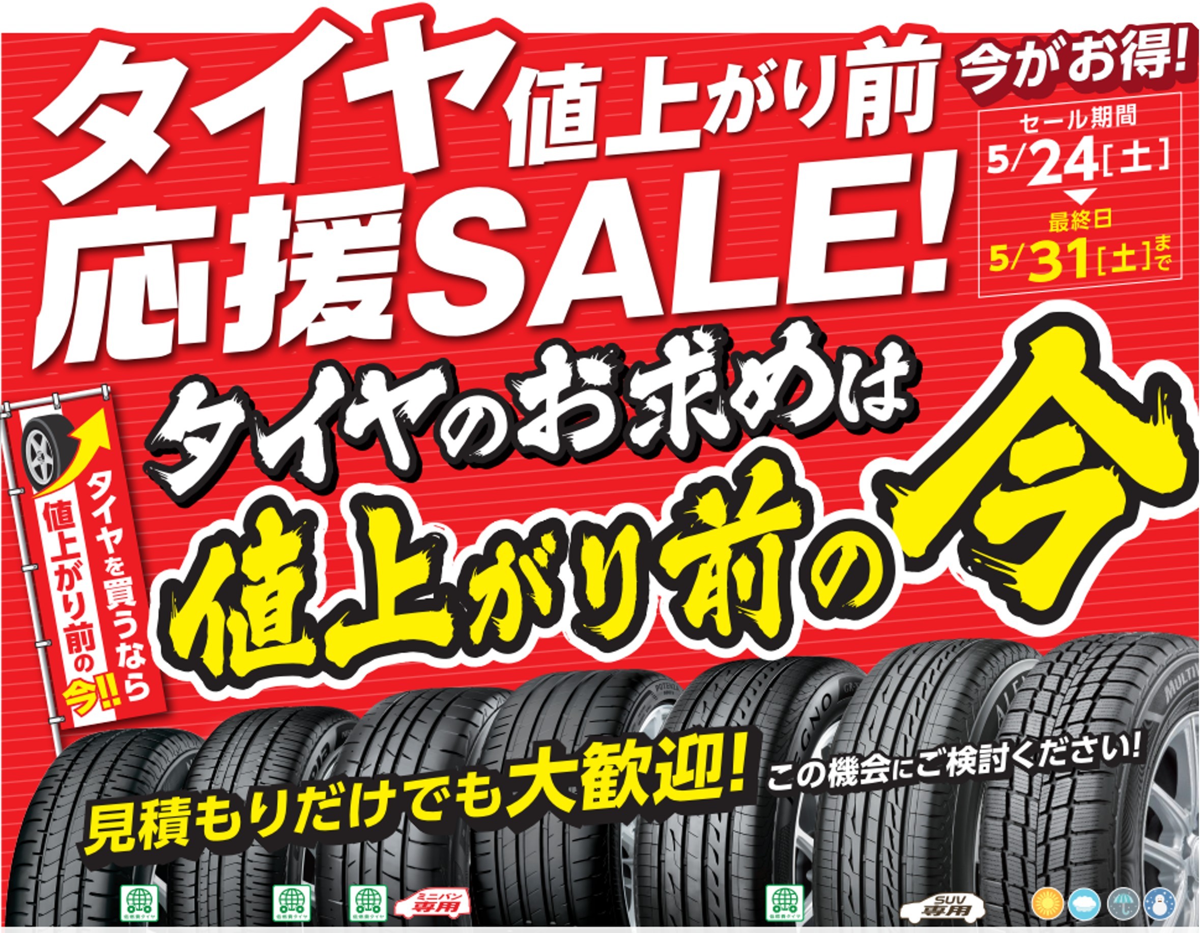 タイヤ値上がり前応援SALE!