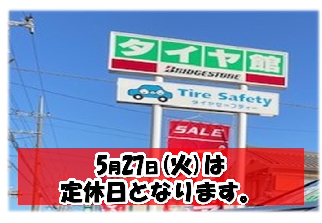 ★5月27日(火)は定休日です★ ポスト 2025年5月26日 いつもタイヤ館守山のWEBをご覧いただきありがとうございます! 滋賀県にあります、タイヤ館守山店 定休日のご案内です! ※2024年1月から変則で水曜日も定休日となります。 宜しくお願い致します! タイヤ館 守山 住所:524-0052滋賀県守山市大門町28-1 電話番号: 077-583-7567 相談予約 タイヤ点検・安全点検/タイヤ履き替え/オイル交換/その他ピット作業の予約 カテゴリ:お知らせ 商品情報