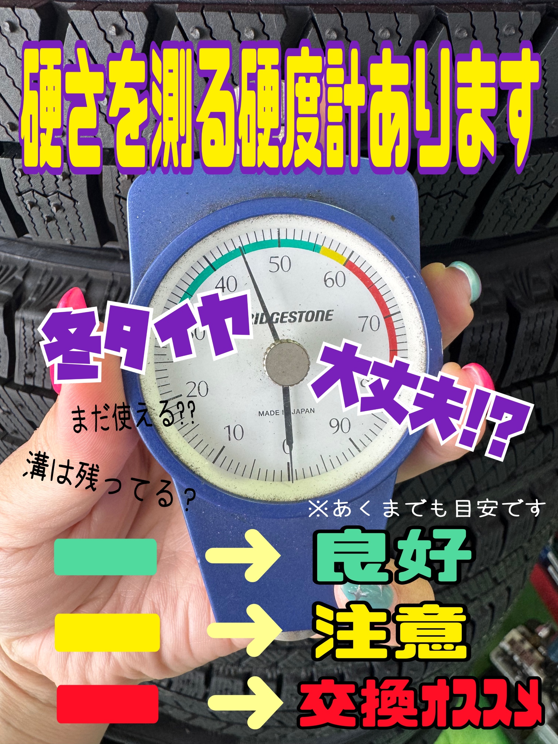 ●スタッドレスタイヤがまだ使えるかどうかの点検もお気軽に●