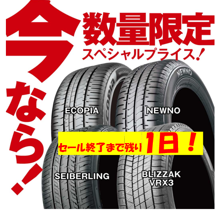 終了間際!期間限定!!『タイヤスペシャルプライスデー』開催!!