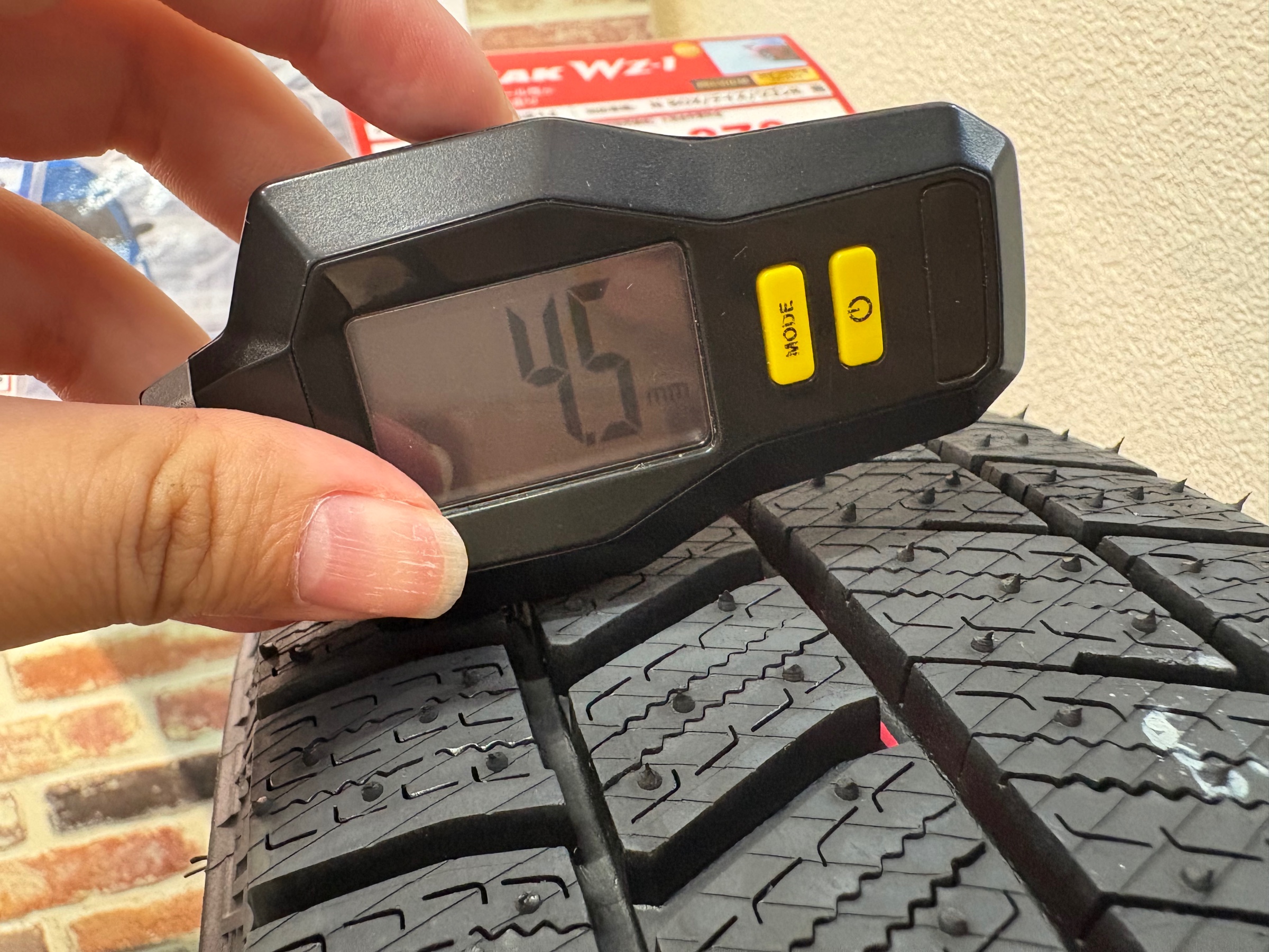 ↑5年使用後冬タイヤのプラットフォーム残り溝 1.9mm