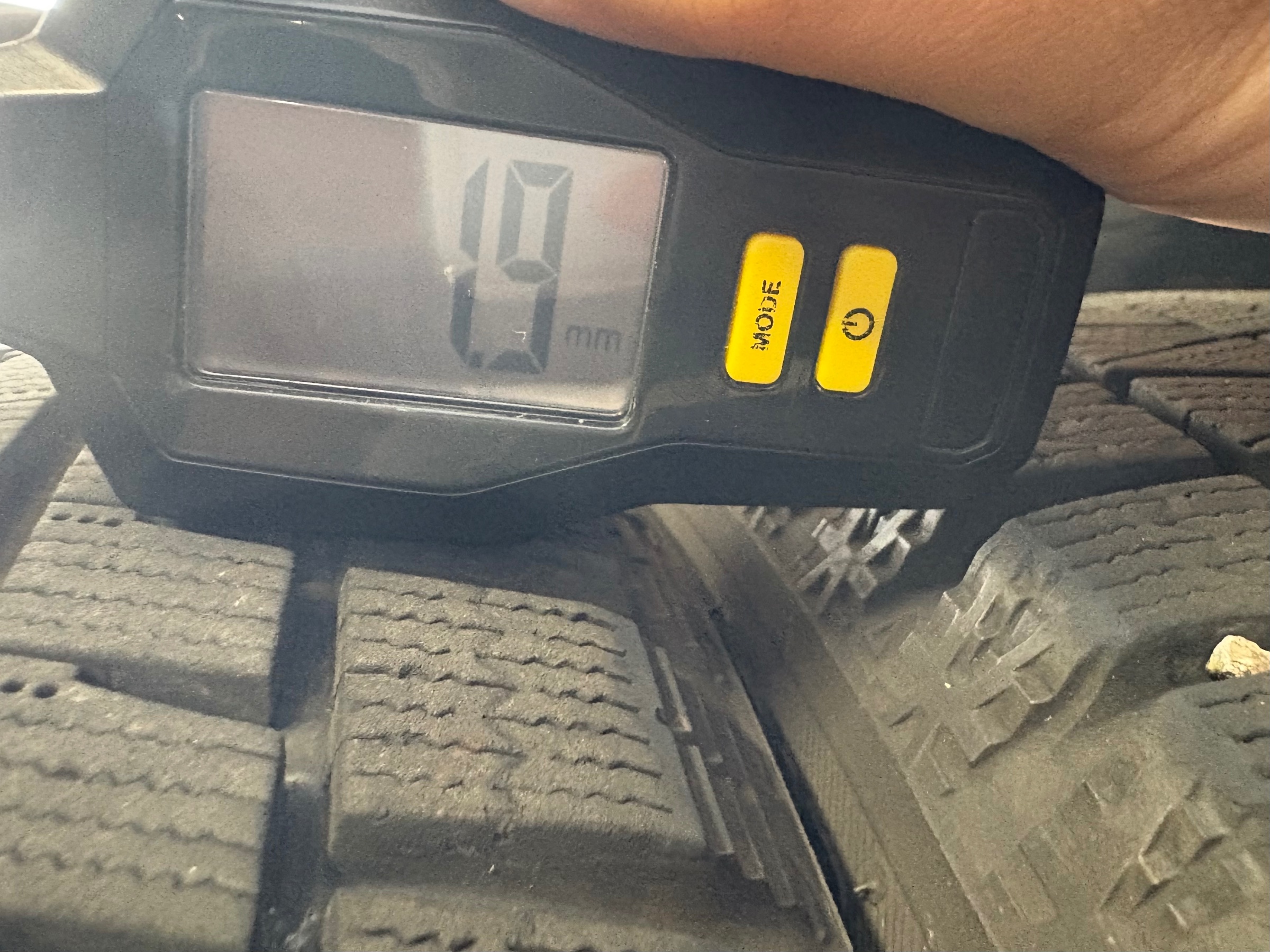 ポコッと膨らんだ場所で測定します。(夏タイヤのスリップサインの様なもの)